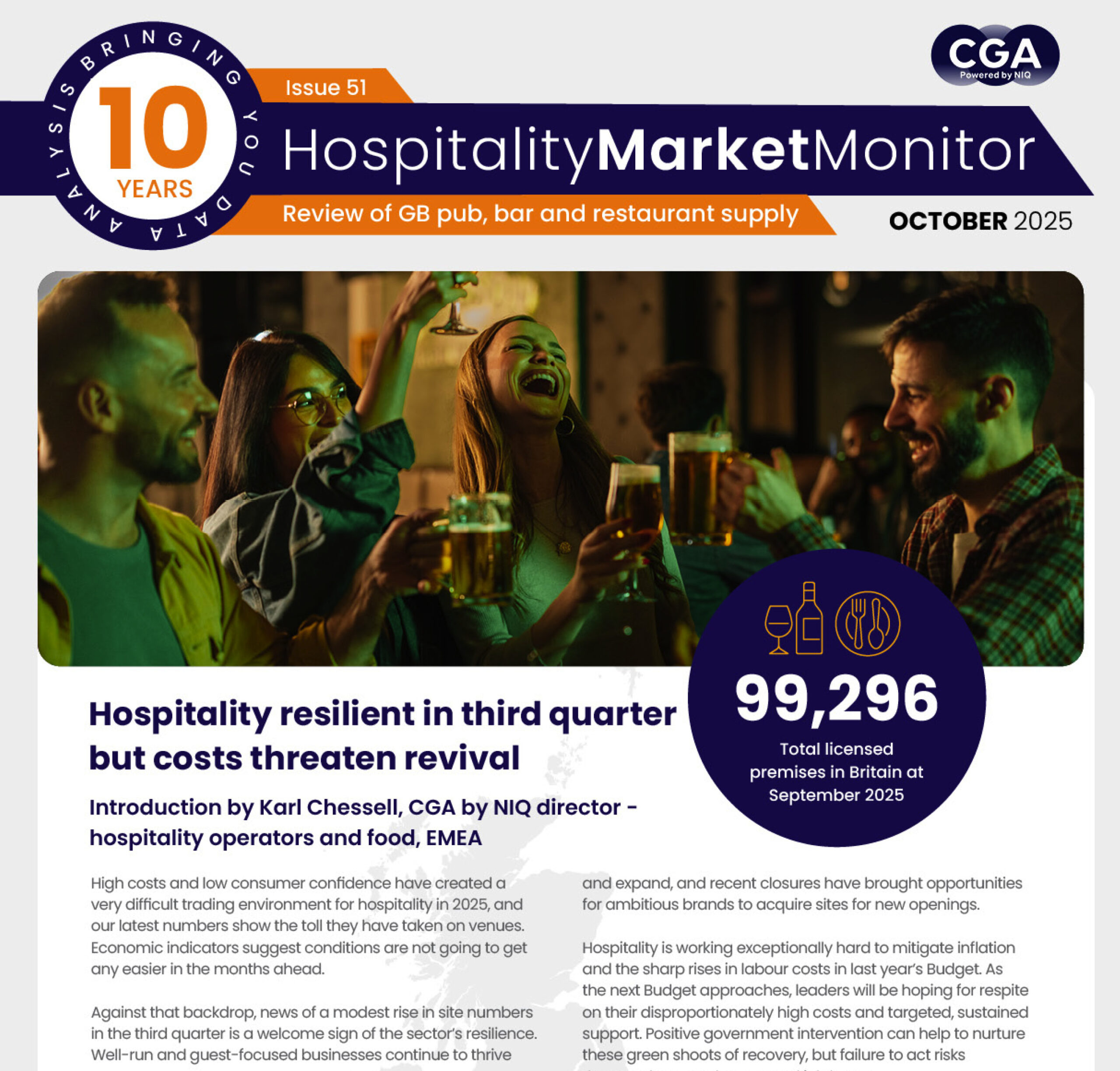 The Hospitality Market Monitor from CGA by NIQ and AlixPartners provides exclusive quarterly analysis of the licensed sector across Britain, with breakdowns of openings and closures by region, channel, tenure and more. Its expert analysis of trends and developments helps operators, suppliers and investors assess opportunities and challenges across the sector. Download the full report here.
