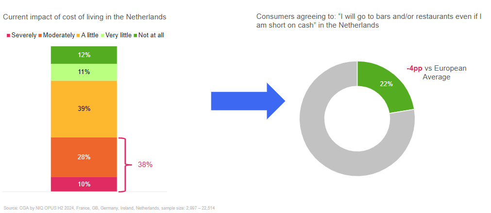 A key factor influencing this trend is the ongoing cost-of-living crisis, which impacts more than one in three Dutch consumers, leading to tightened spending habits and reduced frequency of social outings.